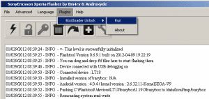 - Selanjutnya klik menu plugin, muncul submenu bootloader unlock, klik Run. (Lihat gambar)